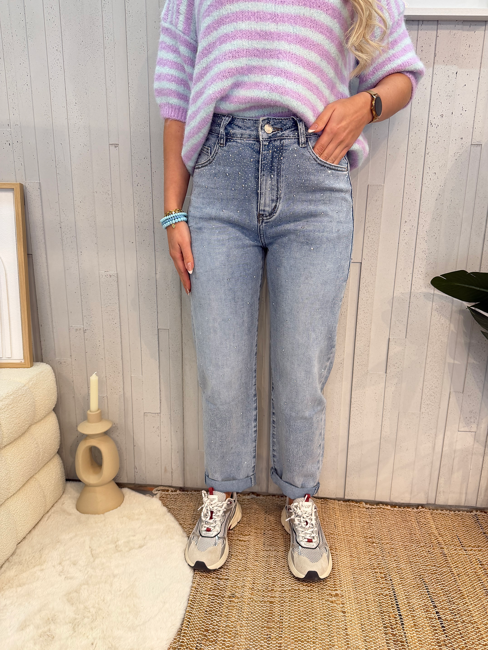 Jeans Mom Fit Mona met strass - licht blauw