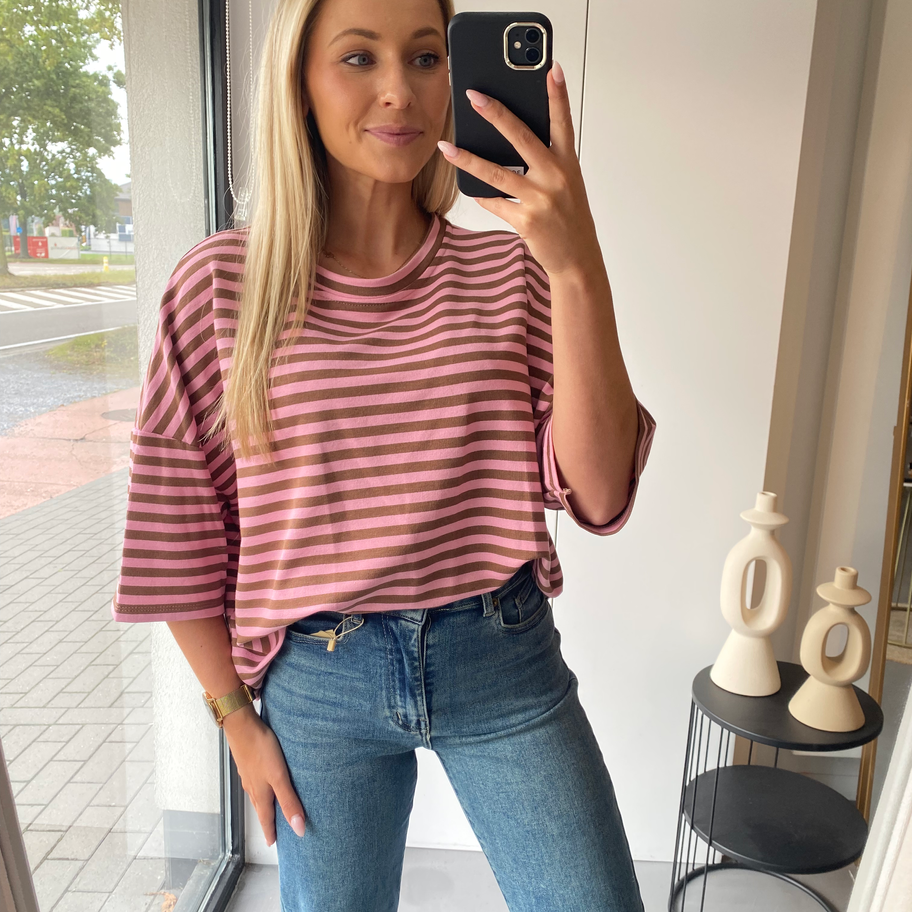 T-shirt Lena - licht roze/bruin